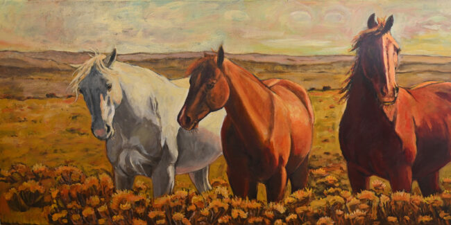 Title: Three Friends Medium:Acrylic on Canvas Dimensions:18″ x 36″ x 1″ Price:$1485.00 Year Completed:2021