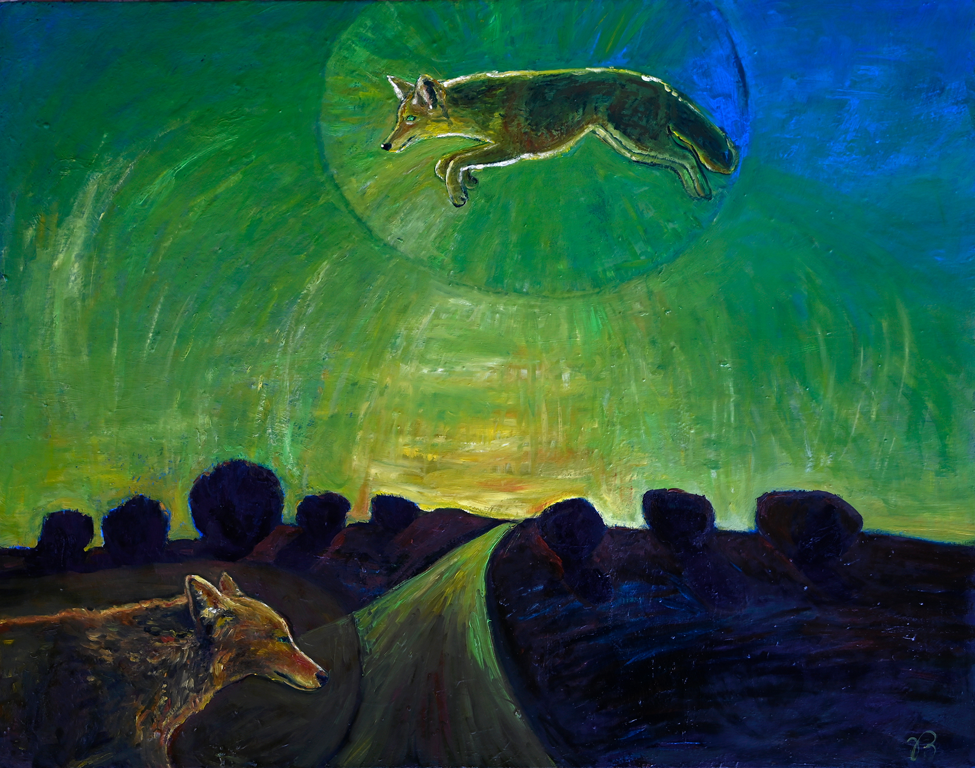 Title: The empty space is full. Soft wet sky. The coyote calls.